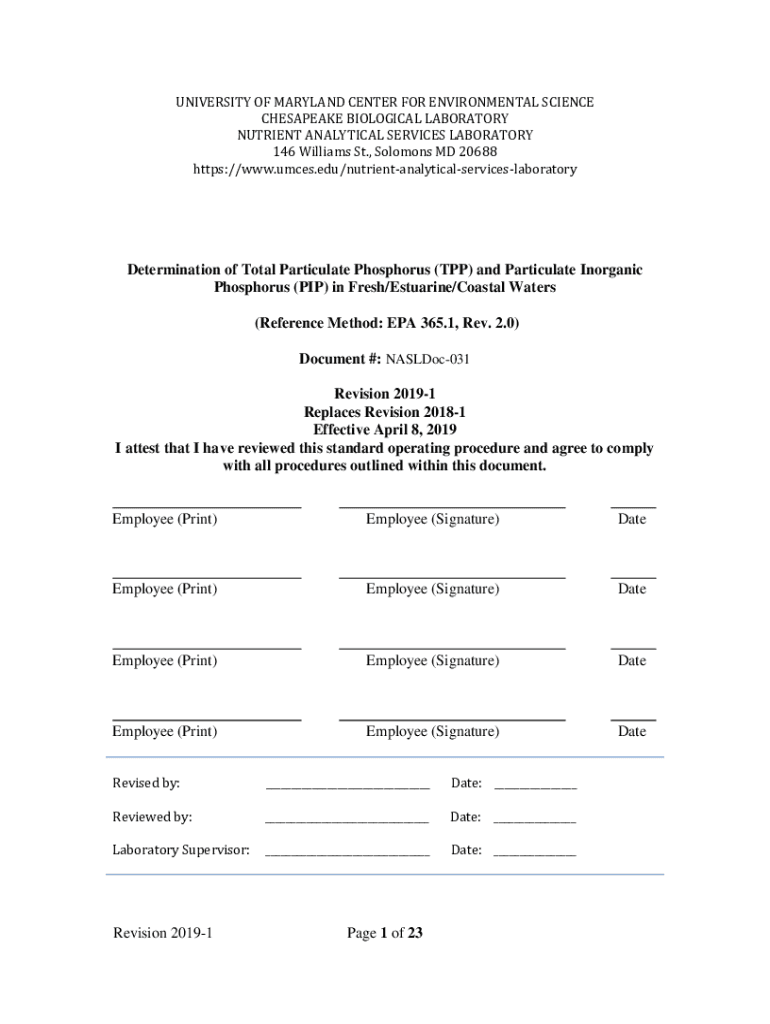 UNIVERSITY OF MARYLAND CENTER FOR ENVIRONMENTAL SCIENCE CHESAPEAKE BIOLOGICAL LABORATORY NUTRIENT ANALYTICAL SERVICES LABORATORY 146 Williams St., Solomon's MD 20688 https://www.umces.edu/nutrientanalyticalserviceslaboratoryDetermination