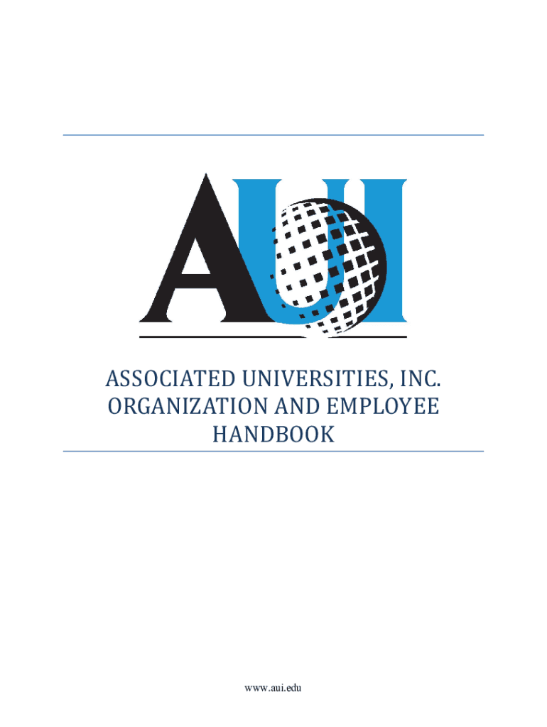ASSOCIATED UNIVERSITIES, INC. ORGANIZATION AND EMPLOYEE HANDBOOKwww.aui.eduDateRevision/UpdateApproval of Update October 20, 2022New Issue October 01, 2023AUI EMPLOYEE HANDBOOK2Employee Handbook Effective