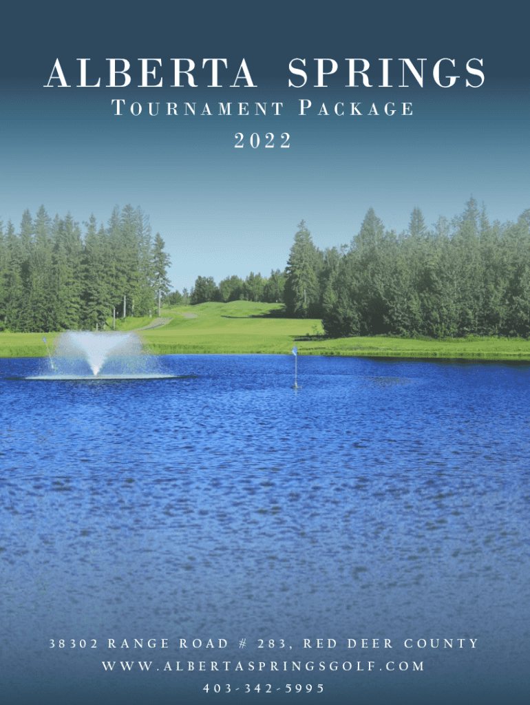 ALBERTA SPRINGS TOURNAMENT PACKAGE 202238302 RANGE ROAD # 283, RED DEER COUNTY WWW.ALBERTASPRINGSGOLF.COM 4033425995A ALBERTA S P PREMIUM G OLF T TOURNAMENT L LOCATION ! T thank you for taking the