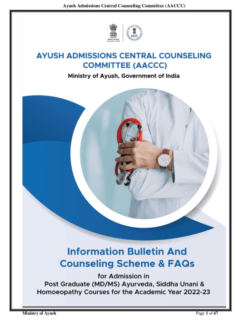 Ayush Admissions Central Counseling Committee (AA CCC)Ministry of AyushPage 1 of 47Ayush Admissions Central Counseling Committee (AA CCC) ACCEPT ONLINE COUNSELING SCHEME FOR SEAT ALLOTMENT IN ALL