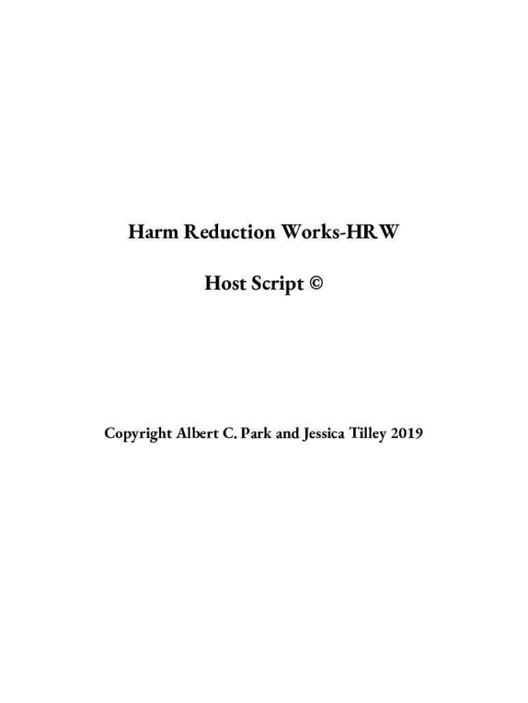 Harm Reduction Workshop Host Script Copyright Albert C. Park and Jessica Villa 2019 H arm Reduction Workshop by HRH413 version 1.3b Albert C. Park and Jessica Villa 20191Host Script Before the start