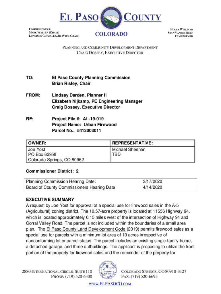 COMMISSIONERS: MARK WALLER (CHAIR) LONGINGS GONZALEZ, JR. (DECKCHAIR)HOLLY WILLIAMS STAN WANDERER CAME BREMERPLANNING AND COMMUNITY DEVELOPMENT DEPARTMENTCRAIG DORSEY, EXECUTIVE DIRECTOR TO:El Paso