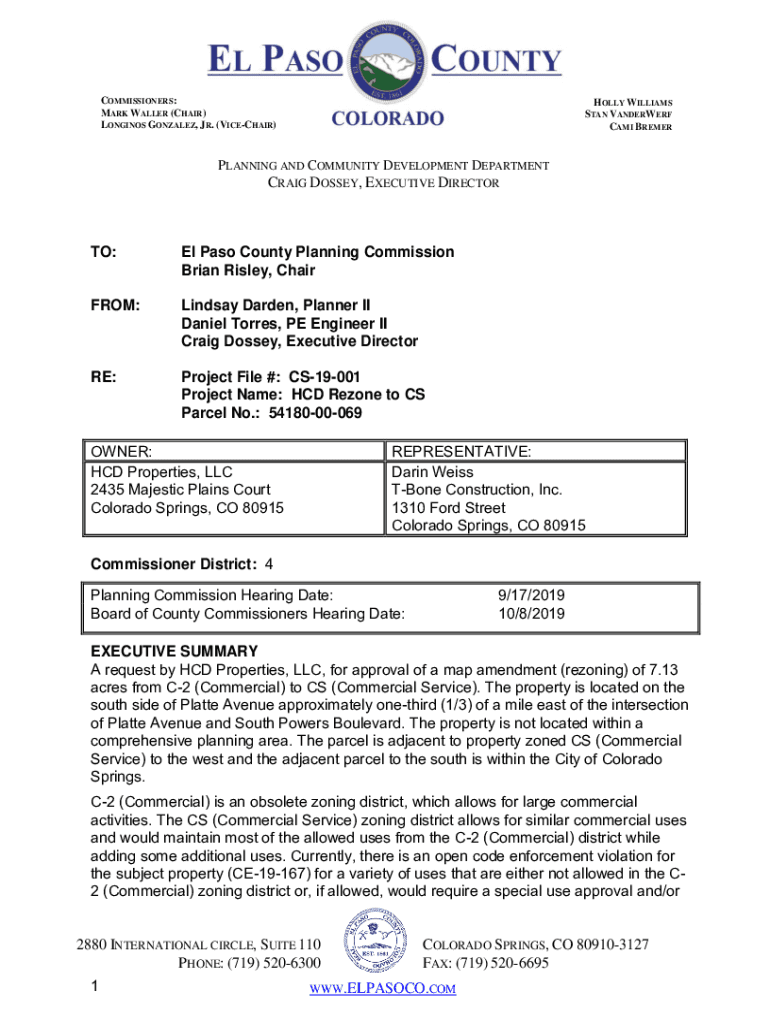 CAME BREMERPLANNING AND COMMUNITY DEVELOPMENT DEPARTMENTCRAIG DORSEY, EXECUTIVE DIRECTOR TO:El Paso