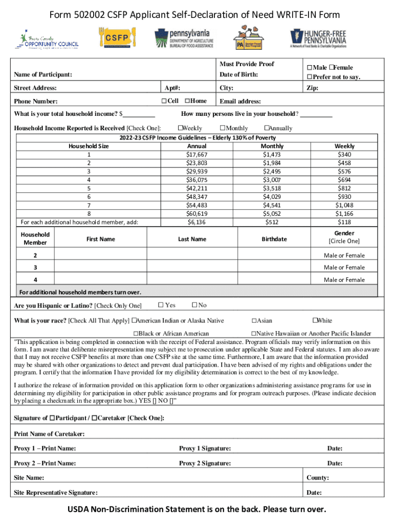Get the free Form 502002 CSFP Applicant Self-Declaration of Need ...