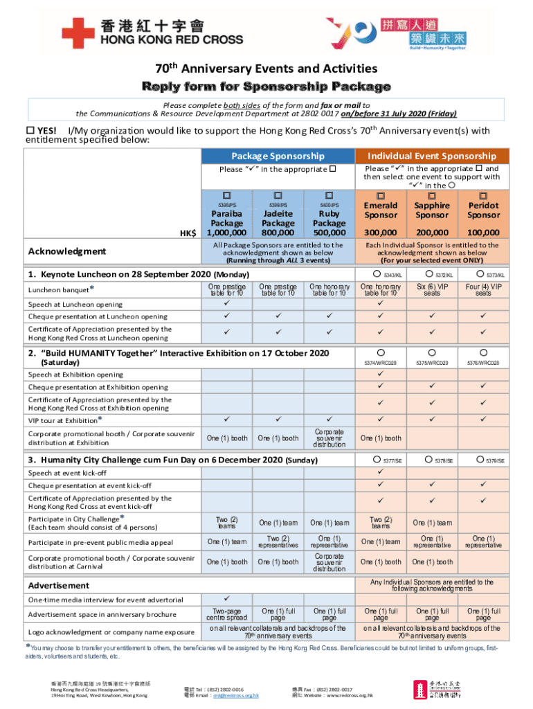 Reply form for Sponsorship Package