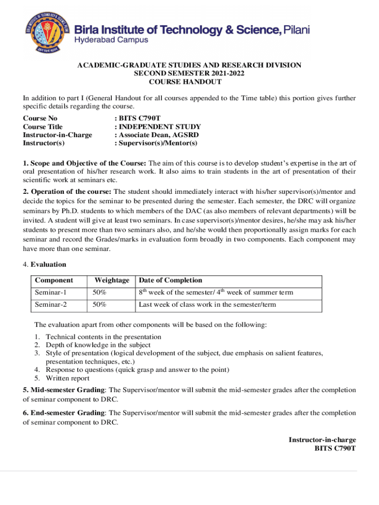 ACADEMICGRADUATE STUDIES AND RESEARCH DIVISION SECOND SEMESTER 20212022 COURSE HANDOUT In addition to part I (General Handout for all courses appended to the Time table) this portion gives further