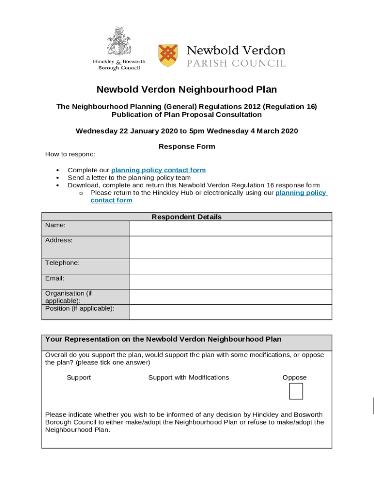 How to fill Newbold Verdon Regulation 16 Response word template