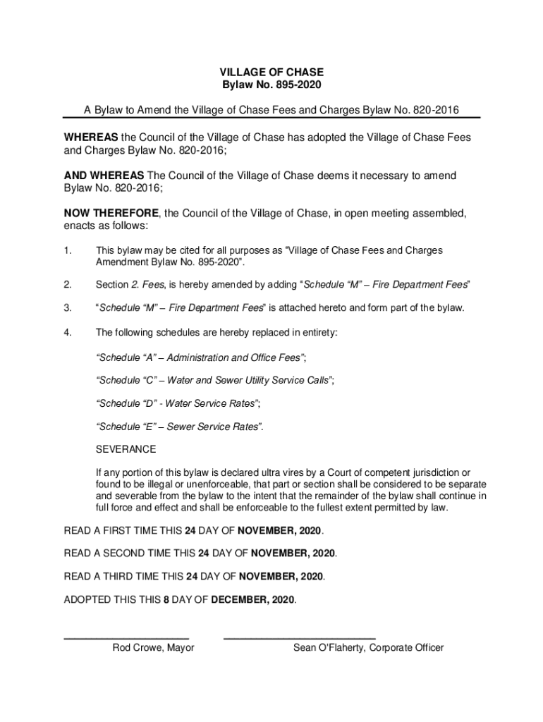 Get the free Bylaw-895-Fees-Charges-Amendment-Fire ... - Village of Chase