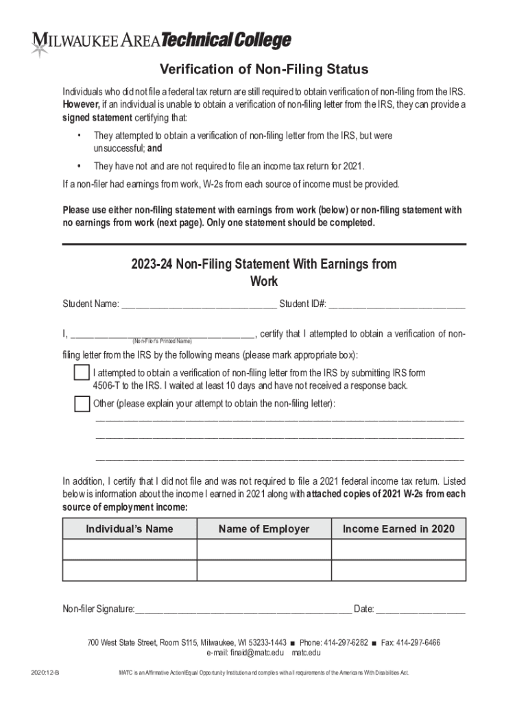 Get the free However, if an individual is unable to obtain a verification of non-filing letter fr...