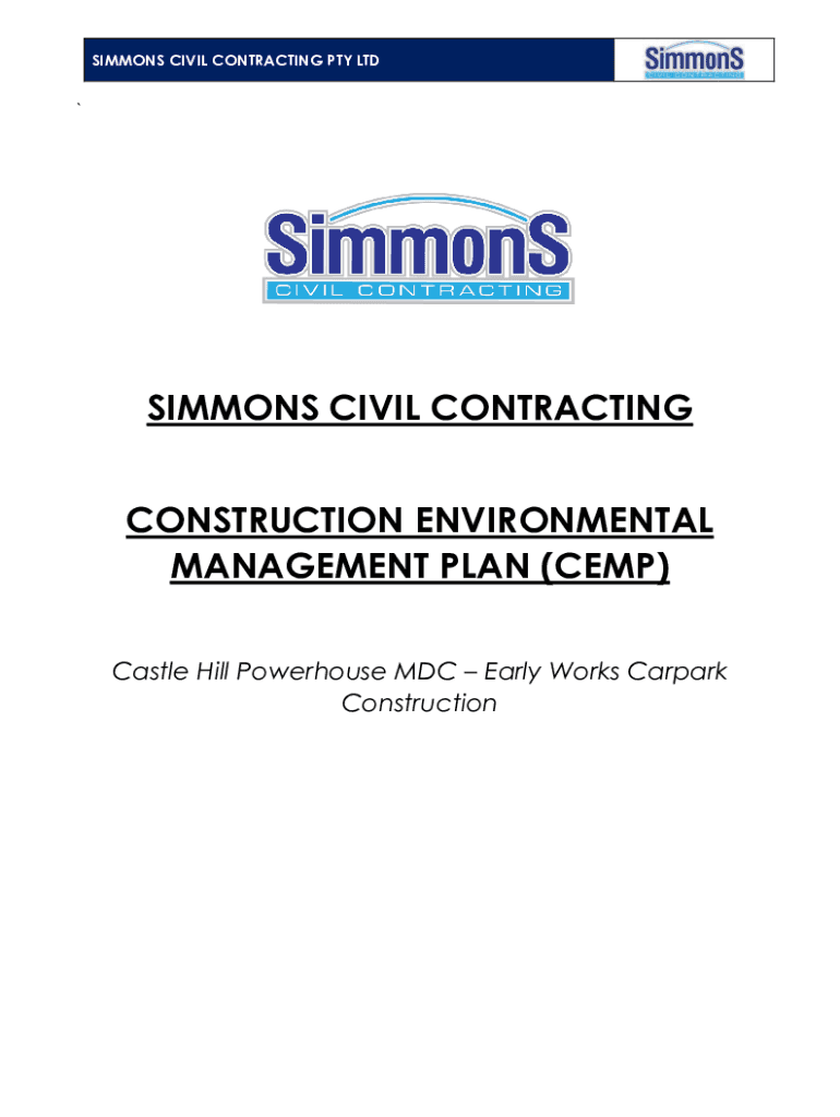 SIMMONS CIVIL CONTRACTING PTY LTD `SIMMONS CIVIL CONTRACTING CONSTRUCTION ENVIRONMENTAL MANAGEMENT PLAN (CAMP) Castle Hill Powerhouse MDC Early Works Car park ConstructionSIMMONS CIVIL CONTRACTING