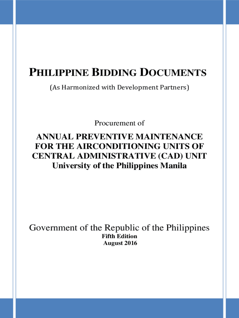 PHILIPPINE BIDDING DOCUMENTS (As Harmonized with Development Partners)Procurement annual PREVENTIVE MAINTENANCE FOR THE AIR-CONDITIONING UNITS OF CENTRAL ADMINISTRATIVE (CAD) UNIT University of the