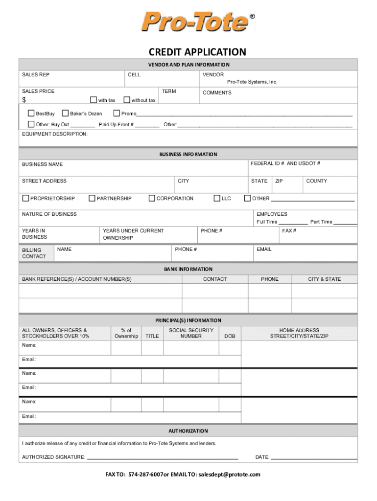 What information must be reported on lcc credit application-w emails-pro-tote?