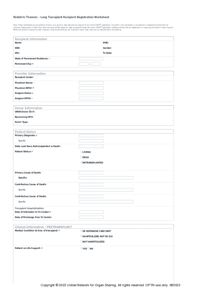Get the free Lung Transplant Recipient Registration Worksheet - UNOS