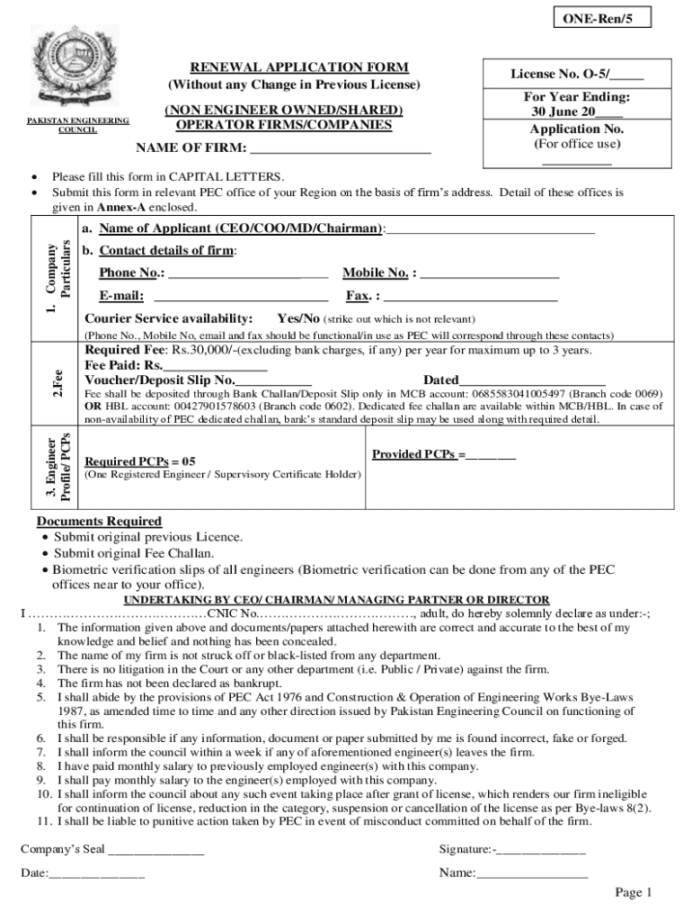 Uneven/5 ```````````RENEWAL APPLICATION FORM (Without any Change in Previous License)License No. O5/___ For Year Ending: 30 June 20___ Application No. (For office use) ___(NON ENGINEER OWNED/SHARED)