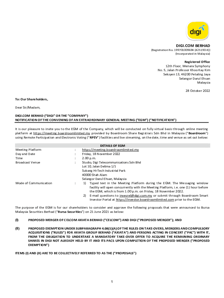 DIGI.COM BROAD(Registration No. 199701009694 (425190X)) (Incorporated in Malaysia)Registered Office 12th Floor, Menard Symphony No. 5, Japan Professor Shoo Kay Kim Season 13, 46200 Pedaling Jay Selangor