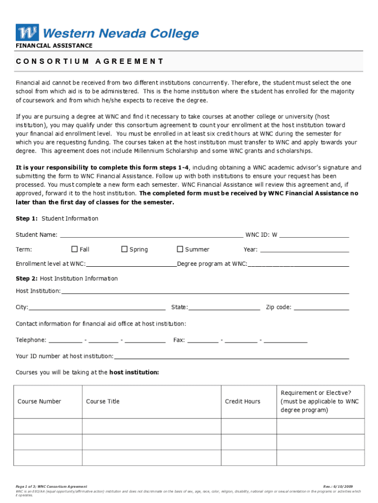 FINANCIAL ASSISTANCECONSORTIUM AGREEMENT Financial aid cannot be received from two different institutions concurrently. Therefore, the student must select the one school from which aid is to be administered.