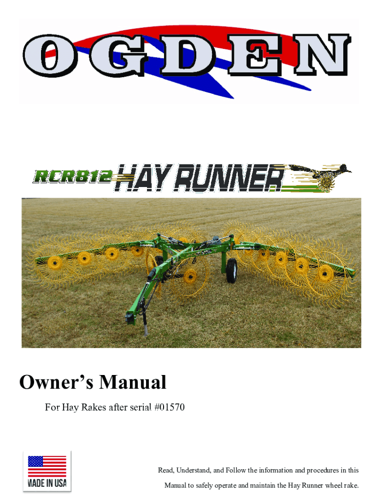 Owners Manual Forlornly Rakes after serial #01570 Hay Rakes after serial #01570Read, Understand, and Follow the information and procedures in this Manual to safely operate and maintain the Hay Runner