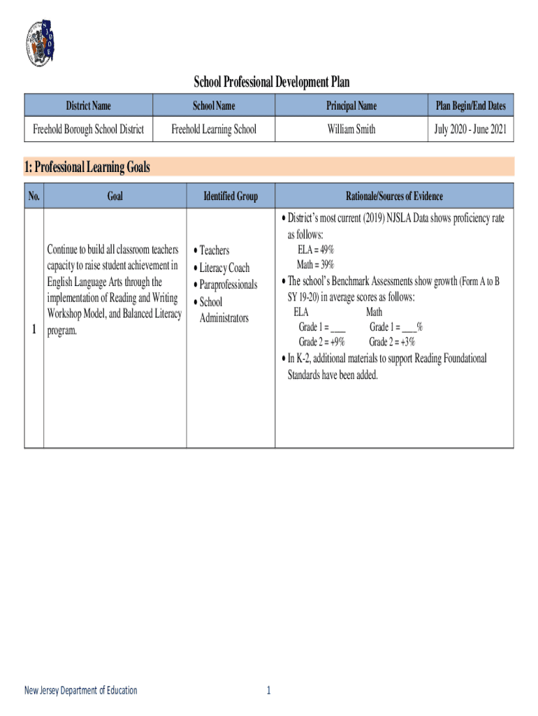 District Homeschool NamePrincipal Nameplate Begin/End DatesFreehold Borough School DistrictFreehold Learning School William Smith July 2020 June 20211: Professional