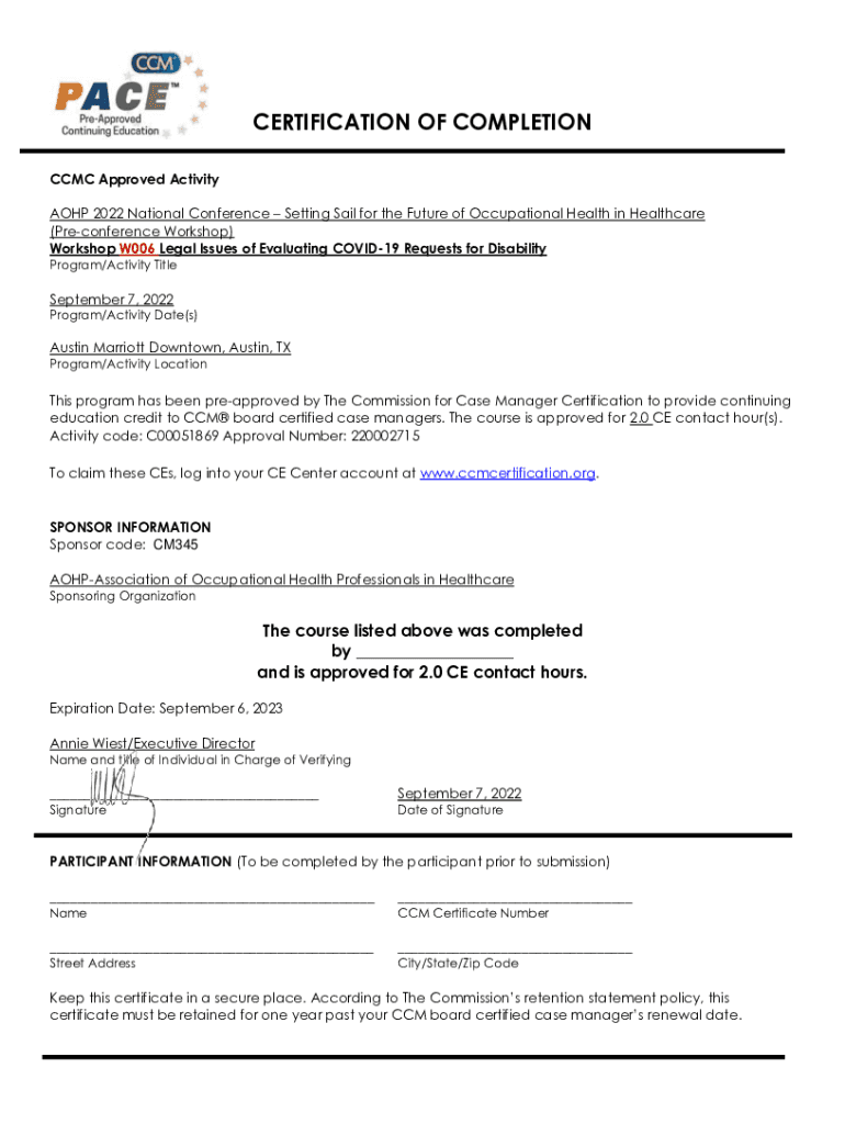 Any individual or organization who has completed a relevant program, course, or project may be required to file a certificate of completion.