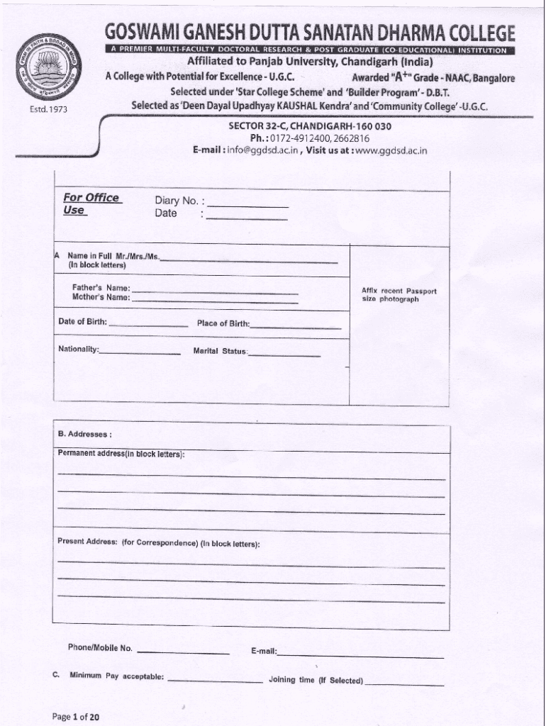 D. Educational Qualification (Please attach one set of attested copies along with original application only)ExaminationUniv/Boardman Subjection and Year of Passing Marks OBT.(with Max MarksClass/