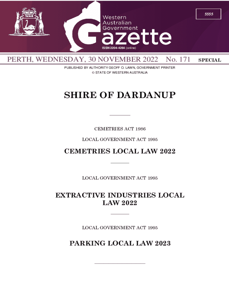 5555ISSN 22044264 (online)PERTH, WEDNESDAY, 30 NOVEMBER 2022 No. 171 PUBLISHED BY AUTHORITY GEOFF O. LAWN, GOVERNMENT PRINTER STATE OF WESTERN AUSTRALIANIZE OF DAEDALUS ___ CEMETERIES ACT 1986 LOCAL