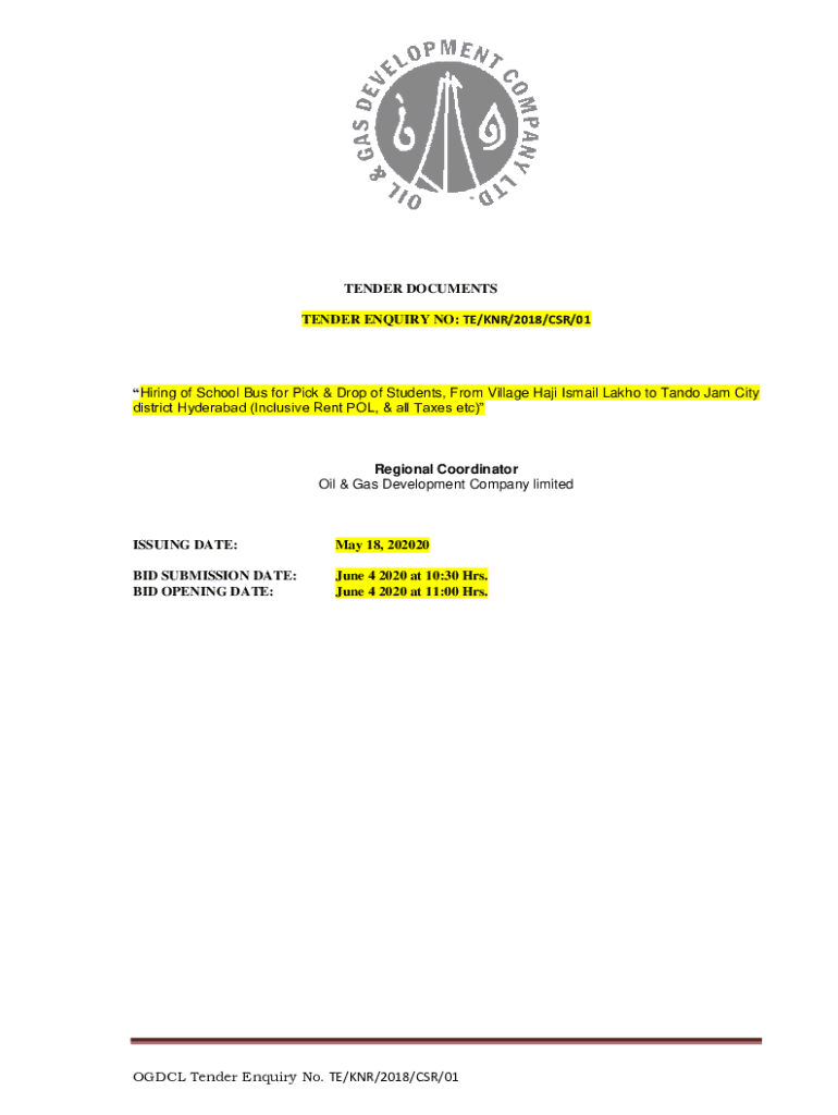 TENDER DOCUMENTS TENDER Inquiry NO: TE/CNR/2018/CSR/01Hiring of School Bus for Pick & Drop of Students, From Village Heidi Ismail Lakh to Tango Jam City district Hyderabad (Inclusive Rent POL, & all