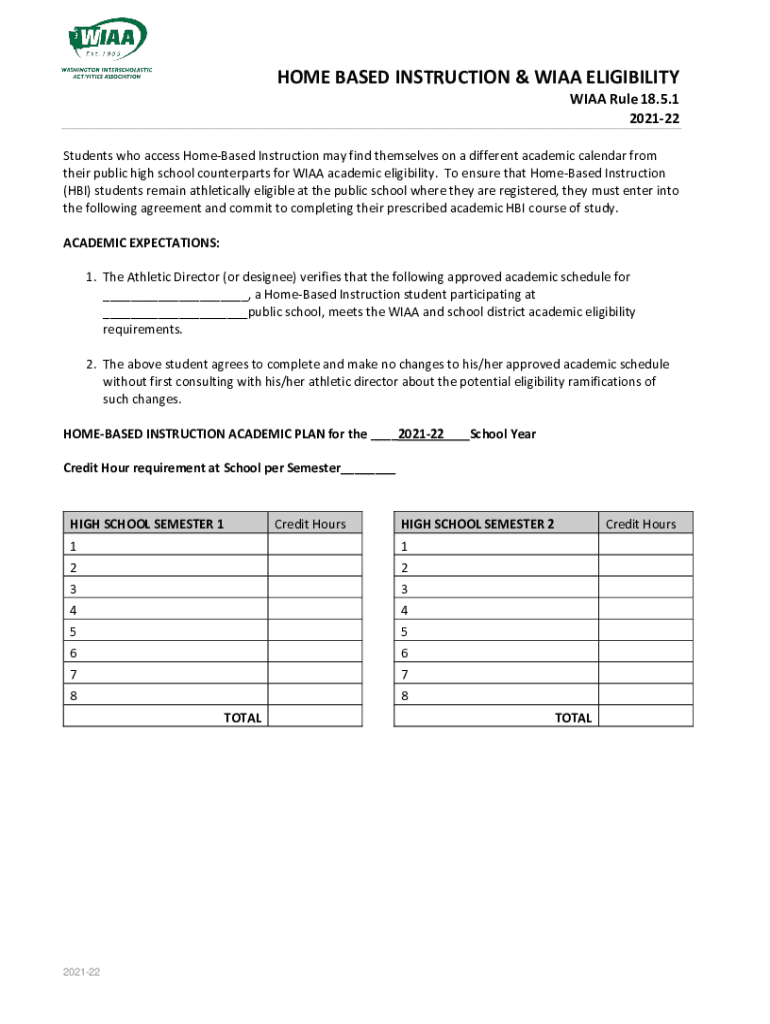 HOME BASED INSTRUCTION & WIAA ELIGIBILITY WIAA Rule 18.5.1 202122 Students who access Homeland Instruction may find themselves on a different academic calendar from their public high school counterparts