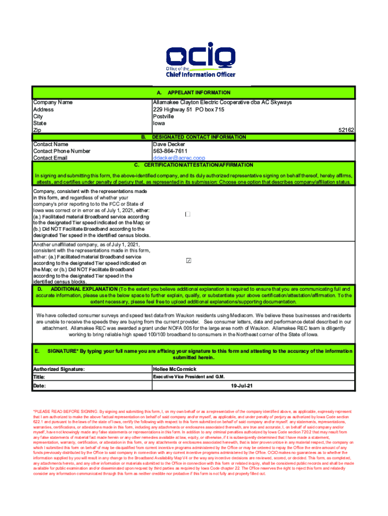 Contact EmailAllamakee Clayton Electric Cooperative DBA AC Skyways