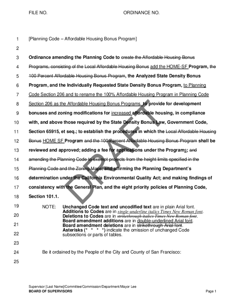 FILE NO.1ORDINANCE NO.[Planning Code Affordable Housing Bonus Program]2 Ordinance amending the Planning Code to create the Affordable Housing Bonus4Programs, consisting of the Local Affordable Housing