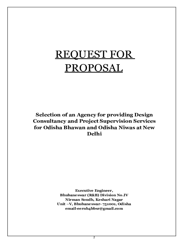 REQUEST FOR PROPOSALS election of an Agency for providing Design Consultancy and Project Supervision Services for Odisha Shawn and Odisha Ni was at New DelhiExecutive Engineer, Bhubaneswar (R&B) Division