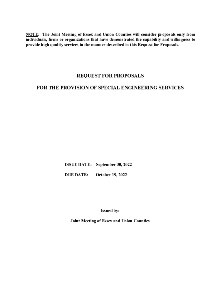 NOTE: The Joint Meeting of Essex and Union Counties will consider proposals only from individuals, firms or organizations that have demonstrated the capability and willingness to provide high quality