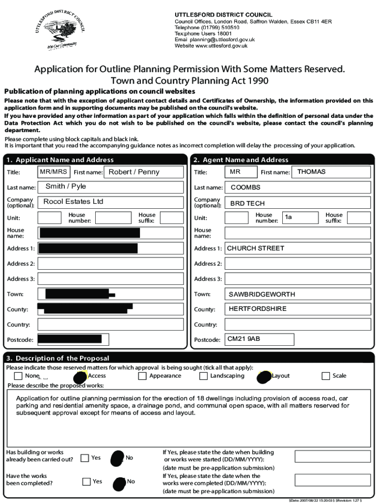 Application for Outline Planning Permission With Some Matters Reserved. Town and Country Planning Act 1990 Publication of planning applications on council websites Please note that except applicant