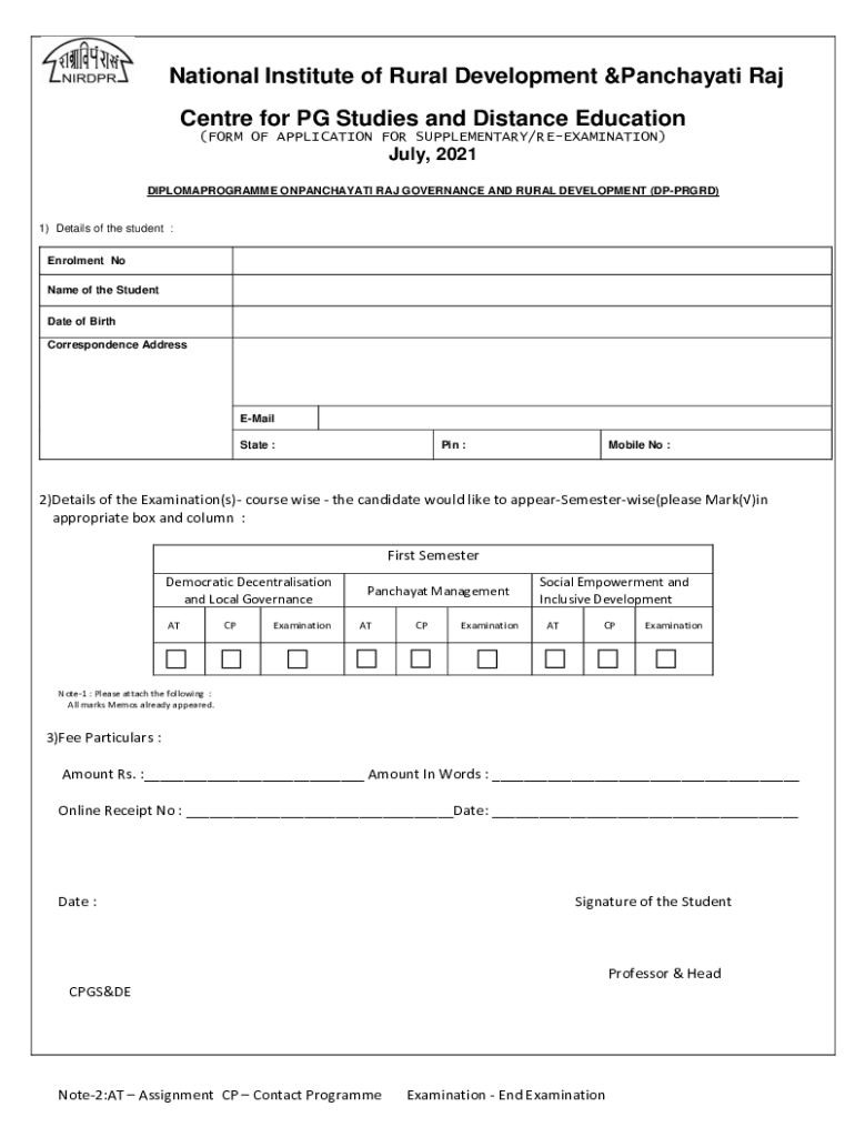 Step 1: Obtain the necessary application form from the National Institute of Rural website or office.