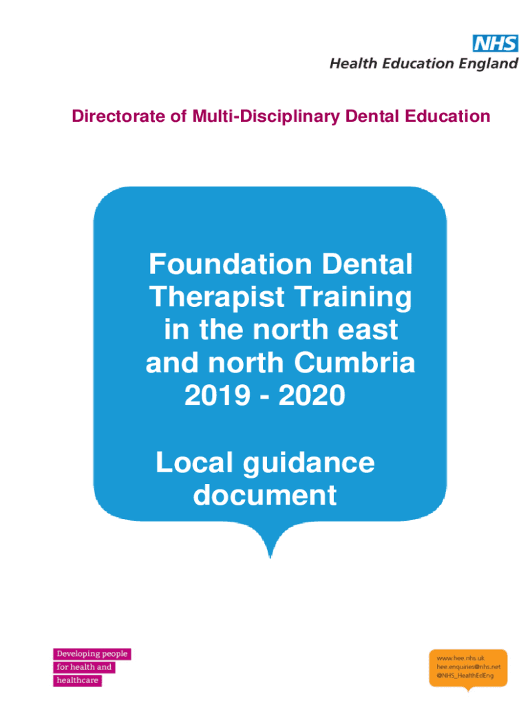 Directorate of Multidisciplinary Dental EducationFoundation Dental Therapist Training in the north-east and north Cambria 2019 2020 Local guidance document 15There is something I don't know that I