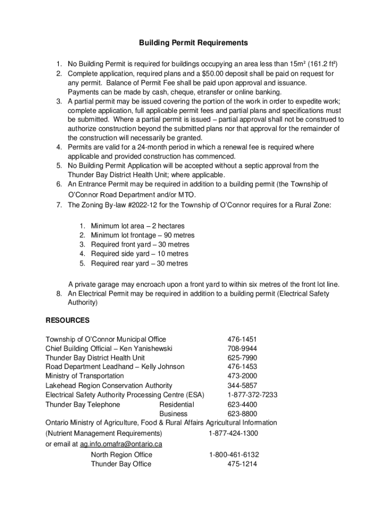 Building Permit Requirements 1. No Building Permit is required for buildings occupying an area less than 15 m (161.2 ft) 2. Complete application, required plans and a $50.00 deposit shall be paid