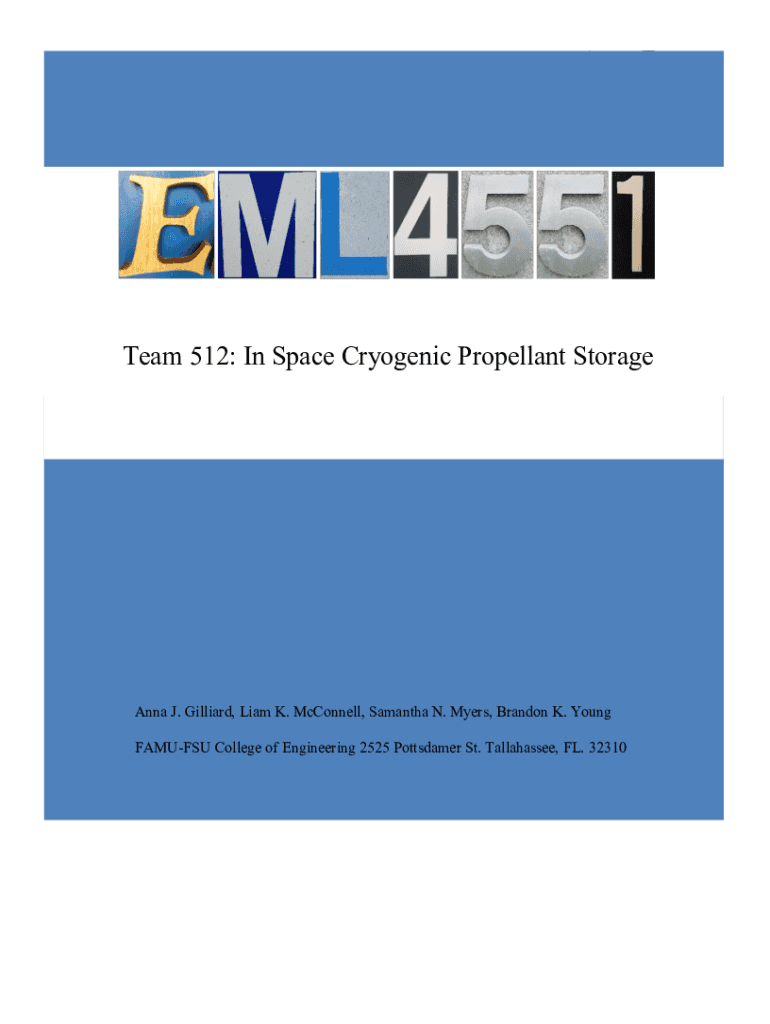 Team 512: In Space Cryogenic Propellant Storage Anna J. Billiard, Liam K. McConnell, Samantha N. Myers, Brandon K. Young FAMOUS College of Engineering 2525 Potsdam St. Tallahassee, FL. 32310Table