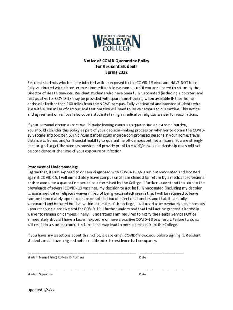 Get the free Notice of COVID Quarantine Policy For Resident Students ...