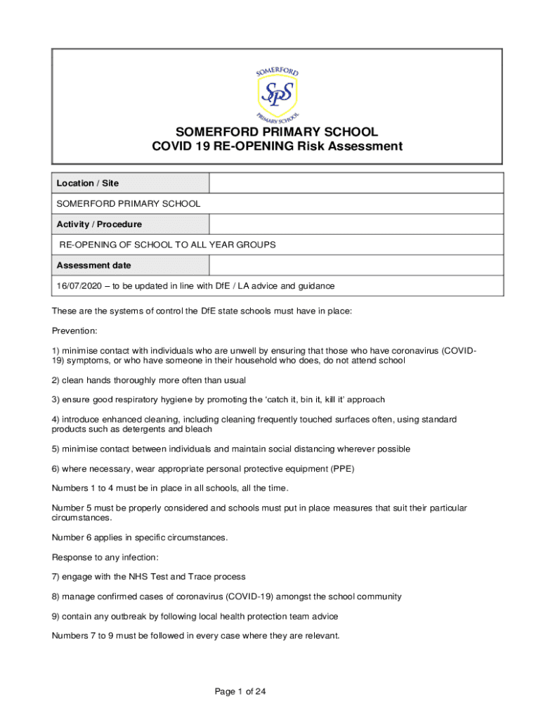 Get the free Wellington Primary School and Nursery Risk Assessment for ...