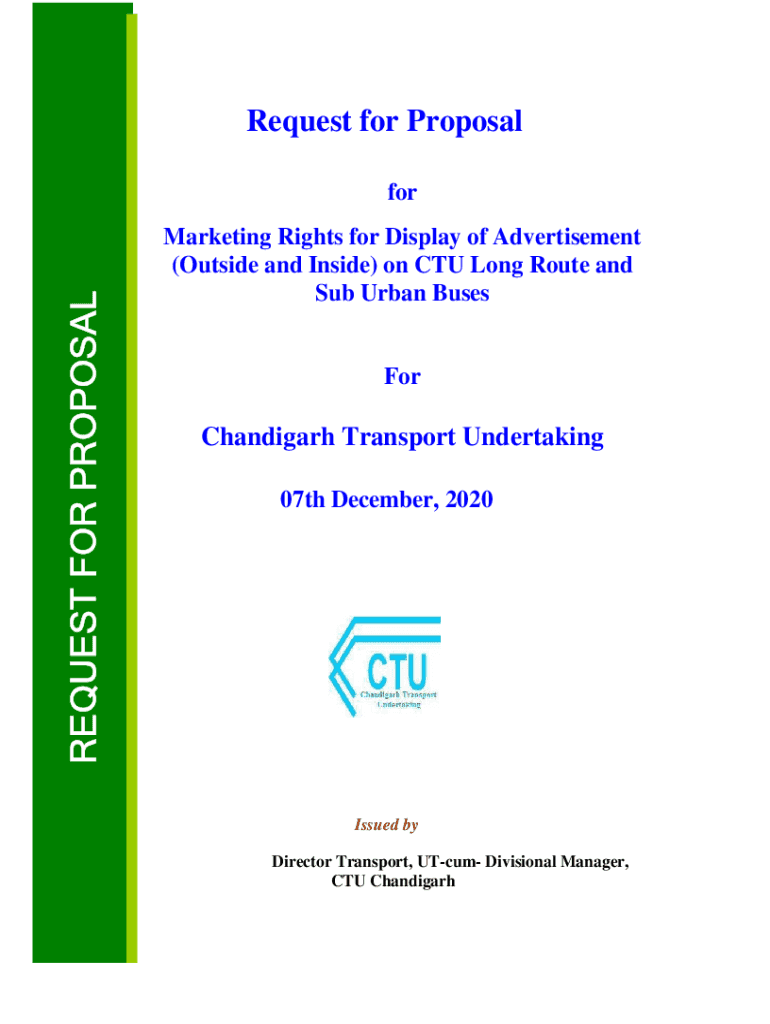 Request for ProposalREQUEST FOR PROPOSAL for Marketing Rights for Display of Advertisement (Outside and Inside) on CTU Long Route and Sub Urban BusesForChandigarh Transport Undertaking 07th December,