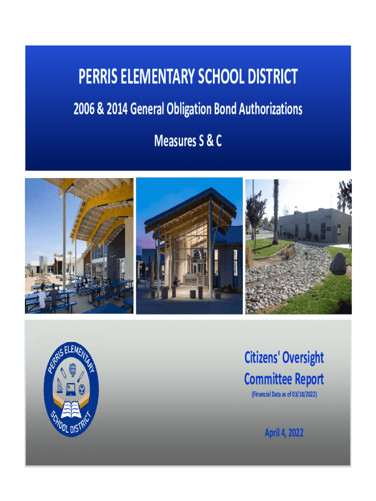 FERRIS ELEMENTARY SCHOOL DISTRICT 2006 & 2014 General Obligation Bond Authorizations Measures S & Citizens\' Oversight Committee Report (Financial Data as of 03/18/2022)April 4, 20222006 GENERAL OBLIGATION