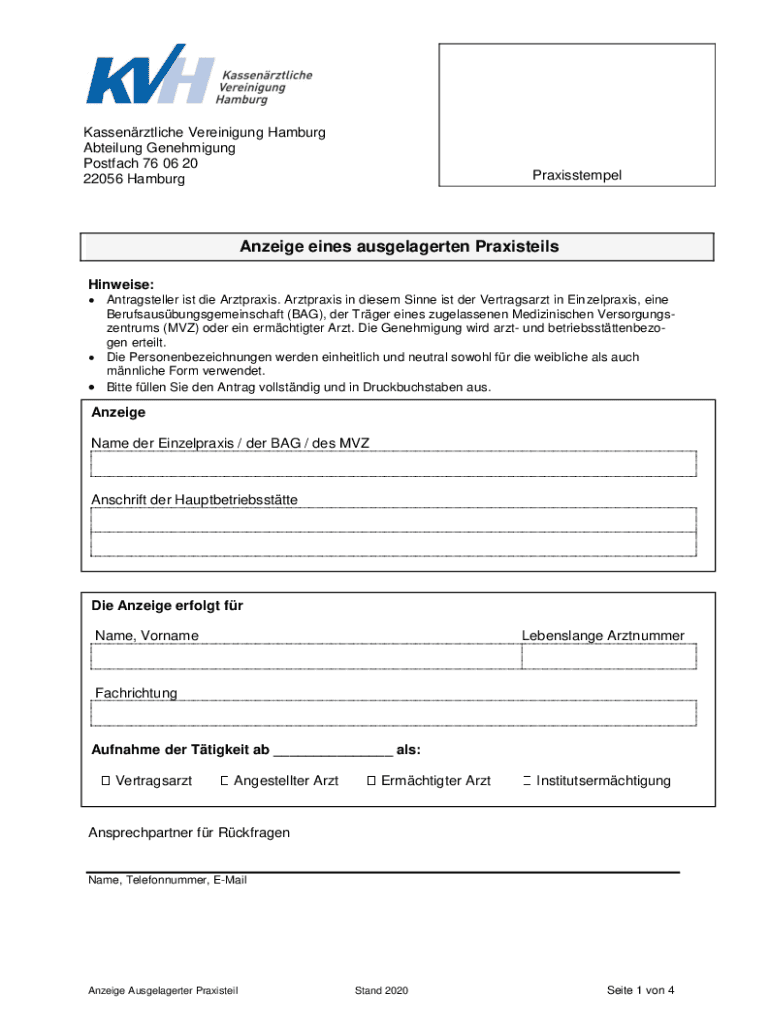 Kassenrztliche Deranging Hamburg Abseiling Genehmigung Postal 76 06 20 22056 HamburgPraxisstempelAnzeige lines ausgelagerten Praxiteles Tinware: Antragsteller is die Arztpraxis. Arztpraxis in diesel