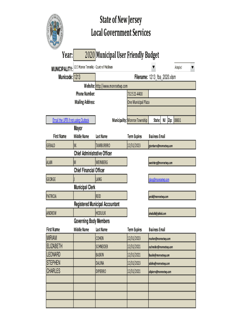 Municode: 12132020 Municipal User Friendly Budget2Filename: 1213_FBA_2020.xlsmWebsite: http://www.monroetwp.com