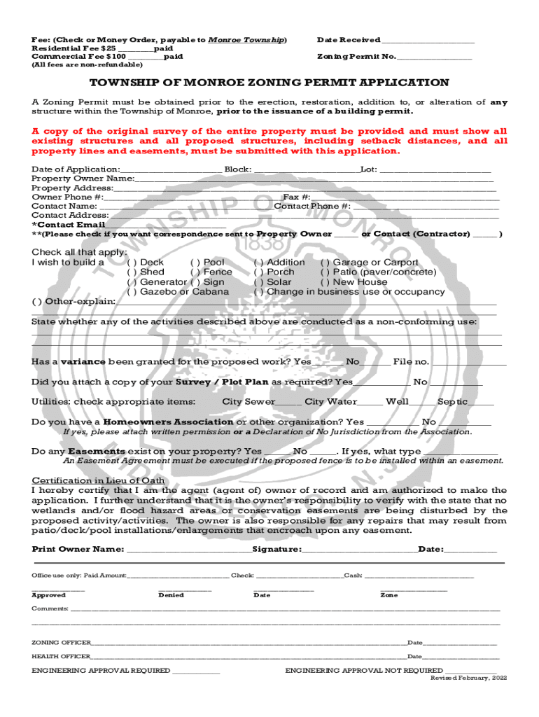 Get the free Zoning Permit Application - Monroe Township