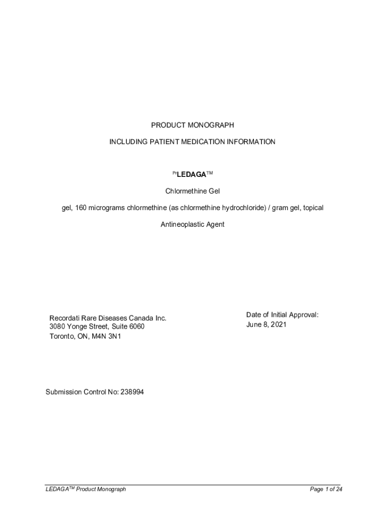 PRODUCT MONOGRAPH INCLUDING PATIENT MEDICATION INFORMATIONLEDAGATMPrChlormethine Gel, 160 micrograms chlormethine (as chlormethine hydrochloride) / gram gel, topical Antineoplastic AgentRecordati