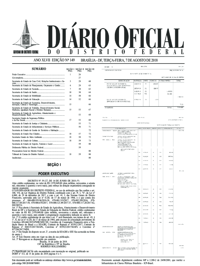 ANO CLVII EDIT N o 149BRASLIA OF, TERCEIRA, 7 DE AGO STO DE 2018SUMRIOSEO I SEO II SEO III