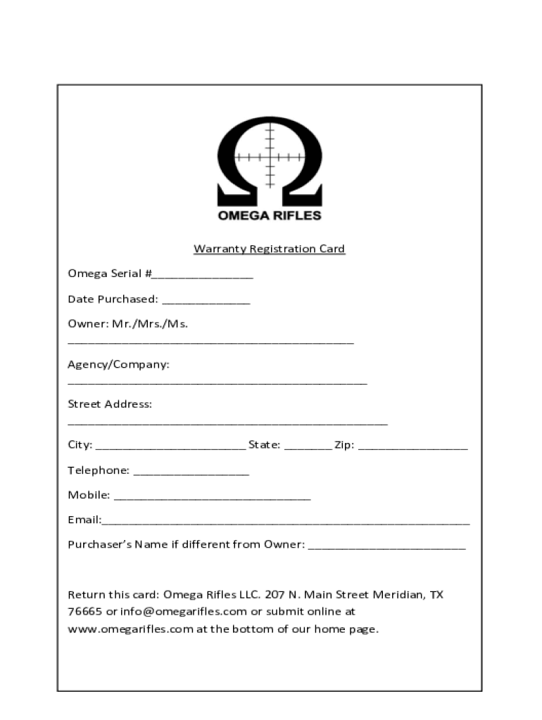 Warranty Registration CardWarranty Registration Card Omega Serial #___ Date Purchased: ___ Owner: Mr./Mrs./Ms. ___ Agency/Company: ___ Street Address: ___ City: ___ State: ___ Zip: ___ Telephone: