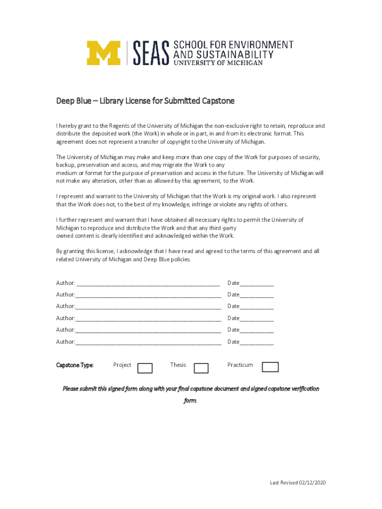 Deep Blue Library License for Submitted Capstone I hereby grant to the Regents of the University of Michigan the nonexclusive right to retain, reproduce and distribute the deposited work (the Work)
