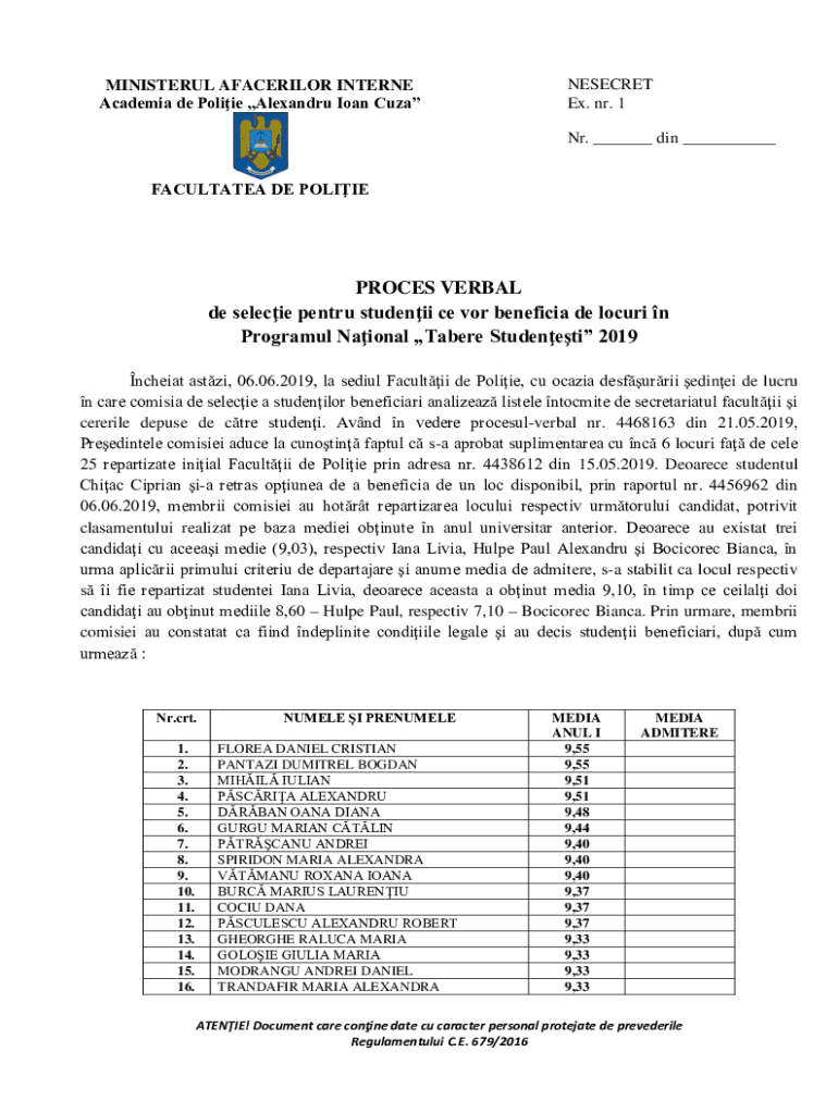 Academia de Poliie Alexandru Loan CuzaNESECRET