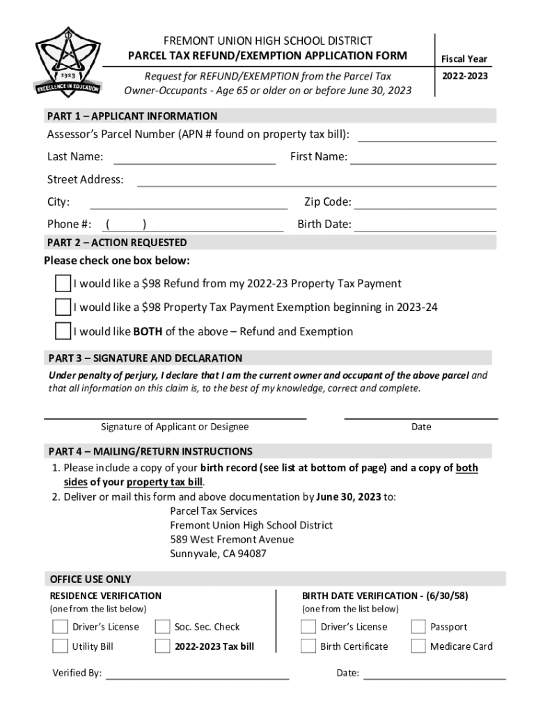 20222023Request for REFUND/EXEMPTION from the Parcel Tax