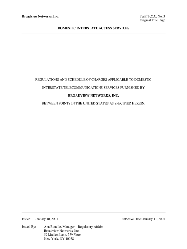 Broadview Networks, Inc. Tariff F.C.C. No. 3